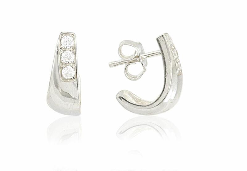 Egyszerre elegáns és modern ez a 925-ös tisztaságú ezüstből készült, apró fehér cirkónia kövecskékkel díszített fülbevaló! Ajánljuk minden olyan hölgynek vagy leányzónak, aki szeretne egy aprócska új ékszert, melyet örömmel viselhet a legkülönbözőbb alkalmakra, a legkülönbözőbb ruhákhoz és öltözetekhez. :)