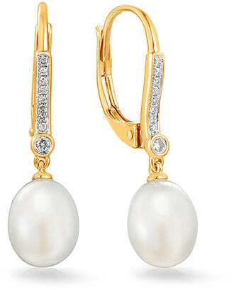 Gyönyörű arany fülbevaló természetes gyöngyökkel sárga aranyból, gyémántokkal díszítve. A fülbevaló belső magassága 11 mm.