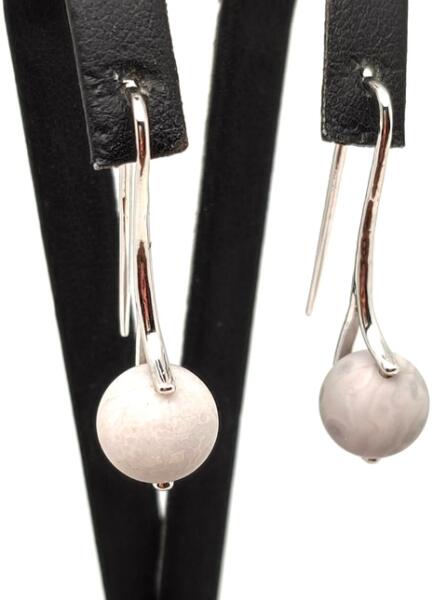 Flint fülbevaló (lógó golyó ívelt matt Ásvány fülbevaló) Egyedi ásvány ékszer.