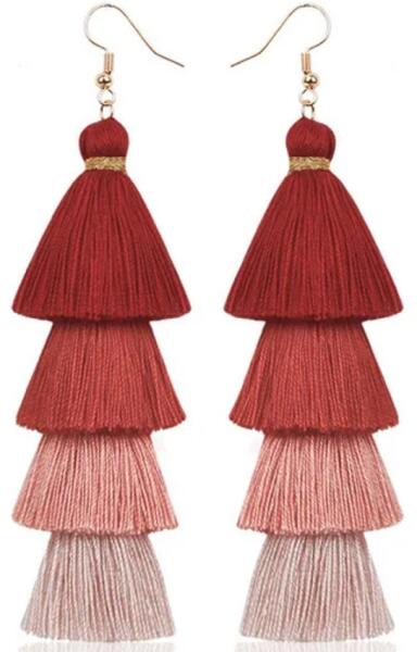 Quasten Fülbevaló Ez a fülbevaló a színek és textúrák fesztiválja. A fülbevalópár több réteg bojtból áll, amelyek más-más színűek. Ez a több színből álló dizájn nem csak elbűvölő, hanem energiával és vidámsággal teli, aminek köszönhetően ez a fülbevaló látványos kiegészítő lehet bármilyen alkalomra. Ez a fülbevaló szuper választás lesz azon hölgyek