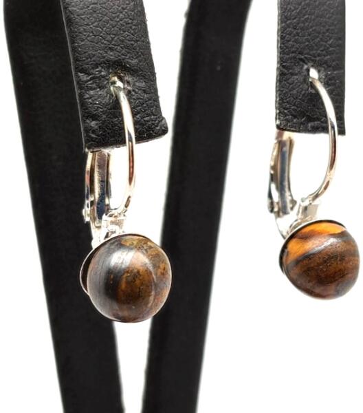 Tigrisvas fülbevaló (golyó záras Ásvány fülbevaló) Egyedi ásvány ékszer.