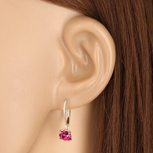 925 ezüst fülbevaló csiszolt cirkónia, foglalatban elhelyezve. A cirkónia fukszia színű, a fülbevaló zárszerkezete patentos. Cirkónia átmérője: 6 mmMéret (zárszerkezettel együtt): 6 x 21 mmSúly: 1,6 gFémjelzéssel ellátott. Az ár egy párra vonatkozik.