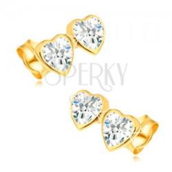 Fülbevaló 14-karátos aranyból, amely vékony összekapcsolt szív körvonalból áll. Az arany vonal a két, átlátszó, csillogó, szív alakra csiszolt cirkóniát keretezi. Bedugós fülbevaló. A fülbevaló méretei: 11 x 6 mmA fülbevaló súlya: 1 gFémjelzéssel ellátott. Az ár egy párra vonatkozik.