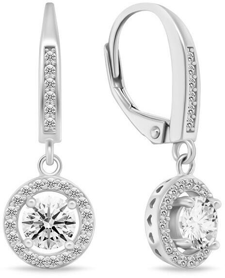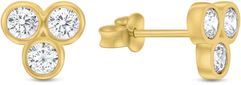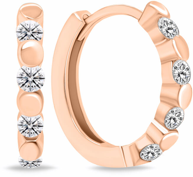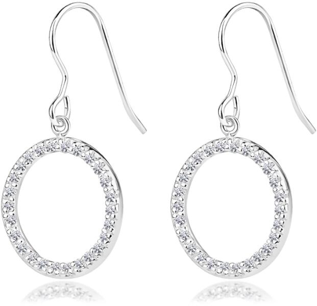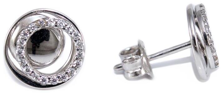 Modern stílusú, csillogó cirkónia kövekkel ékített, ródiummal bevont kör alakú bedugós arany fülbevaló,