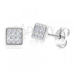 A 14K fehér arany fülbevaló kicsi négyzet alakú fényes és sima széllel. A közepe beültetett csiszolt, apró, átlátszó cirkóniákkal van kirakva. Biztonságos viselését stekker teszi lehetővé. Fülbevaló méretei: 4 x 4 mmFülbevaló súlya: 0,3 gFémjelzéssel ellátott. Az ár egy párra vonatkozik.