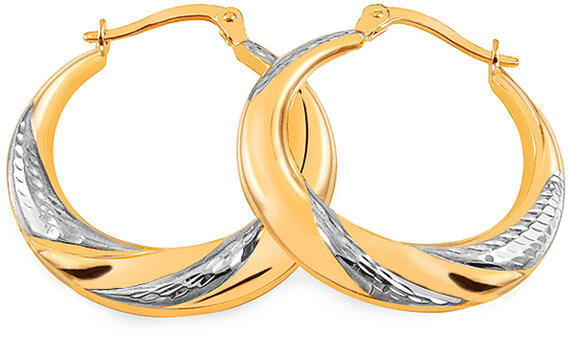 - Mintás, kör alakú arany fülbevalók, egyszerű zárszerkezettel. - A sima és fényes felületet színkülönbség-kombinációval gazdagítják, és finom díszekkel díszítik. - Elegánsak, nagyszerű választás munkahelyre vagy randira.