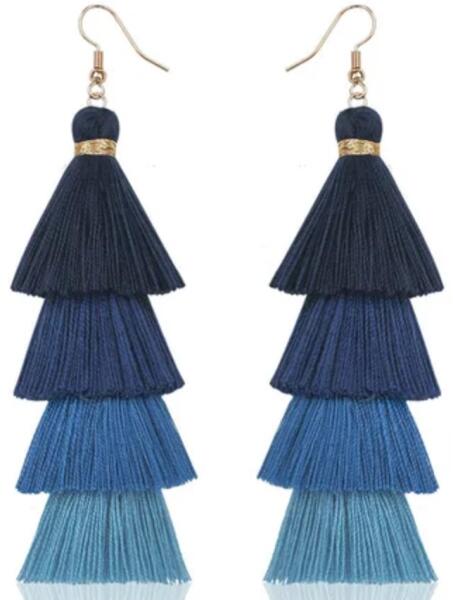 Quasten Fülbevaló Ez a fülbevaló a színek és textúrák fesztiválja. A fülbevalópár több réteg bojtból áll, amelyek más-más színűek. Ez a több színből álló dizájn nem csak elbűvölő, hanem energiával és vidámsággal teli, aminek köszönhetően ez a fülbevaló látványos kiegészítő lehet bármilyen alkalomra. Ez a fülbevaló szuper választás lesz azon hölgyek