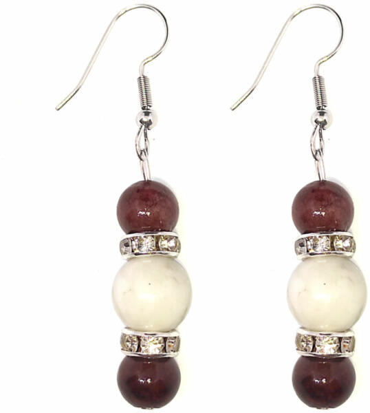 Az ékszer ásványai és tartozékai: – 8 mm-es barna jade ásványok – 10 mm-es fehér howlit ásványok – Ezüst színű strasszos díszek Akasztó anyaga rozsdamentes acél. Áruházunkban találsz hozzáillő karkötőt is. Az ékszerben található ásványok jótékony hatásai: JADE Testünkre: Mivel a Jade kő kedvező hatással van az anyagcserére, ezért megelőzheti az elhízás