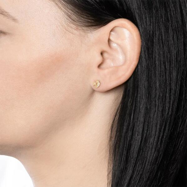 375 arany fülbevaló, ötszirmú virág alakú fejecskével, fényes, sima és mérsékelten lekerekített szárakkal, miközben a virág közepébe agy apró, csiszolt cirkónia helyezkedik el, átlátszó színben. Biztonságos viselését stekker biztosínja. A fülbevaló mérete: 6 x 6 mmA fülbevaló súlya: 0,3 gFémjelzéssel ellátott. Az ár egy párra vonatkozik.