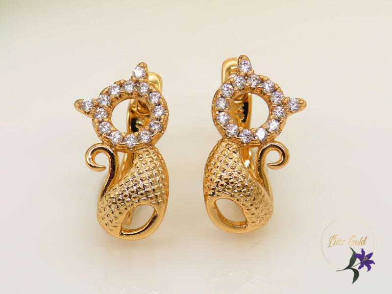 Goldfilled cica alakú fülbevaló cirkóna díszítéssel Szin: 18 K Méret: 12x10 mm Zár: franciakapocs A forgalmazott divatékszerek alapanyaga nikkel és ólommentes ezért többnyire nem okoznak allergiás tüneteket, nyugodtan hordhatják fémérzékeny emberek is. Általában nem színezik a bőrt és más divatékszerekhez képest nagyságrendekkel jobb kopásállósággal rendelkeznek. A
