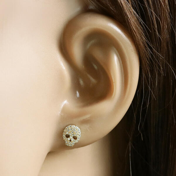 A 375 sárga arany fülbevalót egy koponya díszíti, amely csillogó átlátszó cirkóniákkal van kirakva. A koponya szeme és orra kivágott. Fülbevaló stekkeres zárszerkezettel. A fülbevaló mérete: 6 x 8 mmA fülbevaló súlya: 0,5 gFémjelzéssel ellátva. Az ár egy párra vonatkozik.