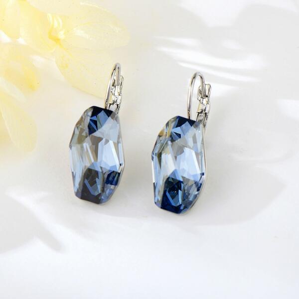 Cikkszám: 0182 Akasztós, kapcsos fülbevaló: - arany bevonattal, - szürkéskék Swarovski kristállyal. Hossza: 2,8 cm. A kristály mérete: 1.8 cm x 1 cm. Súlya: 4 g / pár. Alapanyaga: minőségi fémötvözet. Gyönyörű, exkluzív, Swarovski kristályos ékszer. A megadott méreteket kérjük vegyék figyelembe!