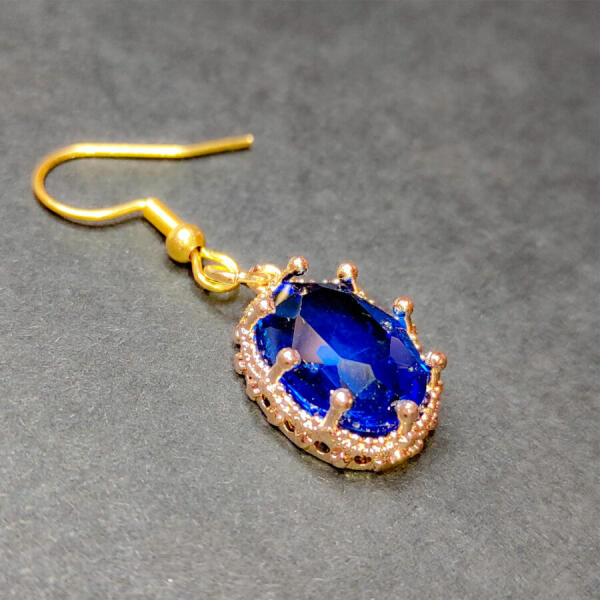 Ovális sötétkék kvarc kristály fülbevaló, 1 pár. A képen egy darab szerepel, de egy párat küldünk. Paraméterek: Medál / mérete kb. 1,8 cm. Anyaga fémötvözet és kristály. Akasztó rozsdamentes acél.