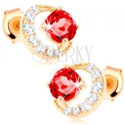 9K fülbevaló sárga aranyból, vékony félhold alakban, kerek, átlátszó cirkóniákkal kirakva és egy csiszolt, kerek gránátból, amely a félhold két csúcsa között helyezkedik el és négy vékony, fényes karommal van odaerősítve. Biztonságos viselését stekker biztosítja. A medál méretei: 7 x 7 mmA medál súlya: 0,7 gFémjelzéssel ellátott. Medál lánc nélkül.