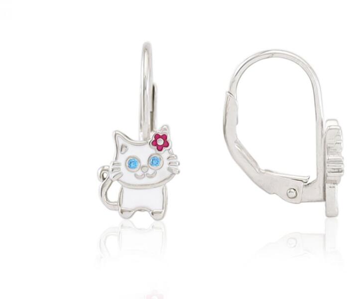 Irtó cuki ez az apró cicás fülbevaló! Sőt, az ábrázatát elnézve talán egy kicsit huncut is... ;) Bátran ajánljuk minden cicabarátnak, macskatulajdonosnak, és annak, aki szereti az állatokat, vagy éppen a pancsolás és a homokozó bajnoka! :D Ezüst gyermek fülbevaló patentzáras festett cica apró kövekkel ródiumbevonatosAnyaga: 925 ezüstBevonat: ródiumbevonatosZárszerkeze