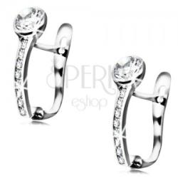 A fehér 14K fülbevaló felső részét egy nagyobb átlátszó cirkónia díszíti, amely kerek sima foglalatba van beültetve. Alatta enyhén hajlított vonal húzódik apró kerek cirkóniákkal kirakva. A fülbevaló kapcsolása orosz patent. Fülbevaló méretei: 4 x 14 mmFülbevaló súlya: 1 gFémjelzéssel ellátott. Az ár egy párra vonatkozik.
