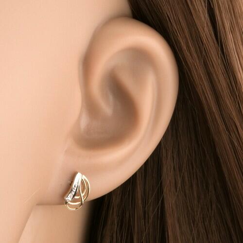 Az 585 arany fülbevalót sárga aranyból készült levél forma alkotja, amelynek egyik oldalát fehér arany és csillogó átlátszó cirkóniák díszítik. A levél másik oldala három keskeny, öszekötött ívből tevődik össze. Biztonságos viselését stekker teszi lehetővé. Fülbevaló méretei: 4 x 9 mmFülbevaló súlya: 0,4 gFémjelzéssel ellátott. Az ár egy párra vonatkozik