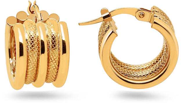 Vonzó arany karika fülbevaló gravírozott vonalakkal, modell IZ30685