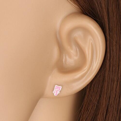 925 ezüst fülbevaló, részletesen ábrázolt medvebocs. Felismerhetőek a medve testrészei és arca. Enyhén kidomborodó vékony vonalak. A felülete fényes és sima. Zárszerkezete stekkeres. Fülbevaló mérete: 4 x 6 mmSúly: 0,64 gFémjelzéssel ellátott. Az ár egy párra vonatkozik.