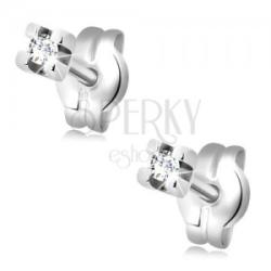 Az 585 arany fülbevalót egy kerek, csiszolt, átlátszó cirkónia alkotja. A cirkónia négy fényes, lekerekített végű pálcával van rögzítve, amelyek keskeny, hosszúkás és szögletes foglalatot alkotnak. Biztonságos viselését stekker teszi lehetővé. A fülbevaló mérete: 2 x 2 mmCirkónia átmérője: 1,5 mmFülbevaló súlya: 0,4 gFémjelzéssel ellátott. Az ár egy párra vo