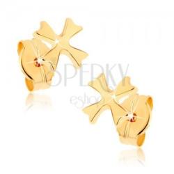 Beszúrós fülbevaló 9K sárga aranyból kis máltai kereszt alakban, mely felszíne sima és fényes. Biztonságos viselését stekker biztosítja. A fülbevaló méretei:5 x 5 mm A fülbevaló súlya: 0,3 gFémjelzéssel ellátott. Az ár egy párra vonatkozik.