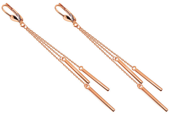 Láncfülbevaló három dísszel rosé aranyból, modell IZ21059R