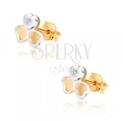 A 9K kombinált arany fülbevalót egy háromlevelű lóhere alkotja, amelynek leveli konkáv alakúak. A lóhere széleit fehér arany borítja. Két levél középen sárga aranyból van a harmadik levél fehér arany, melyben átlátszó apró cirkónia van helyezve. A fehér arany levélke enyhén kidomborodó. Stekkeres zárszerkezet. Fülbevaló átmérője: 8 x 7 mmSúly: 0,5 gFémjelzésse