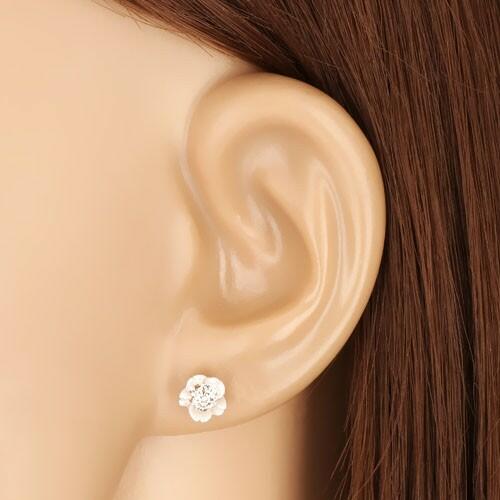 585 sárga arany fülbevaló öt szirmos gyöngyházból áll. A szirmok enyhén befelé hajlanak, virág alakot formálva. Közepén apró csillogó Swarovski kristályok vannak . A kristályok átlátszóak. Stekkeres zárszerkezet. Fülbevaló méretei: 6 x 6 mmSúly: 0,5 gFémjelzéssel ellátott. Az ár egy párra vonatkozik. Figyelmeztetés :A gyöngy organikus eredete miatt a színárnyalat