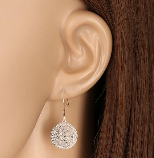 A fülbevaló 925 ezüstből készült. Egy díszes karika, amelyen elöl vésett minta található, karikák, pontok és spirális formában. A hátoldal sima és tükörfényes. Akasztós fülbevaló. A fülbevaló méretei (akasztóval): 14 x 31 mmA fülbevaló súlya: 1,63 g Fémjelzéssel ellátott. Az ár egy párra érvényes.