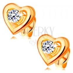 Az 585 sárga arany fülbevaló egy szimmetrikus szív körvonalából tevődik össze, amelynek enyhén kidomborodó és tükörfényes a felülete. A körvonal közepén egy kiemelt, kerek, átlátszó cirkónia van elhelyezve. Biztonságos viselését stekker teszi lehetővé. Fülbevaló méretei: 8 x 7 mmFülbevaló súlya: 0,7 gFémjelzéssel ellátott. Az ár egy párra vonatkozik.