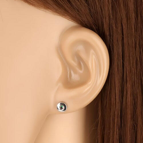 A 9K fehér arany fülbevalót egy kicsi csillogó, zöld színű cirkónia díszíti. A cirkónia egy kerek tükörfényes foglalatba van helyezve. A fülbevaló felülete sima. Stekkeres zárszerkezet. A fülbevaló átmérője: 5 mmA fülbevaló súlya: 0,7 gFémjelzéssel ellátva. Az ár egy párra vonatkozik.
