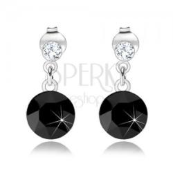 Fülbevaló 925 ezüstből csillogó átlátszó kerek Swarovski kristályból. Ez alatt nagyobb fekete csiszolt felszínű kristály függ, mely a matt domború ezüst foglalatba van belehelyezve. A fülbevaló kapcsolása stekkeres. A fülbevaló méretei: 8 x 17 mmA fülbevaló súlya: 1,35 gFémjelzéssel ellátott. Az ár egy párra vonatkozik.