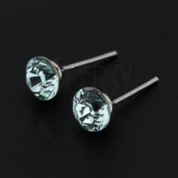 A kis bedugós fülbevaló sterling ezüstből készült. A tölcsér alakú kehelybe világoskék kerek SWAROVSKI kristály van ágyazva. Biztonságos viselését a kaucsuk stekkerek biztosítják. Átmérő: 6 mmA fülbevaló súlya: 0,4 gAz ár egy párra vonatkozik. Fémjelzéssel ellátott.