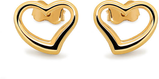 Arany fülbevaló 9 karátos sárga aranyból. A fülbevaló faragott szív alakú, magasfényű felülettel.