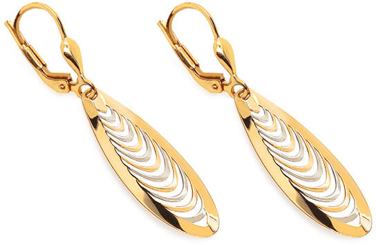 Hogy nem létezik szerelem első látásra? Ezzel az ékszerrel biztosan megtapasztalhatja. Ezt a rendkívüli, csepp alakú fülbevalót finom fehér és sárga arany vonalak díszítik. Az arany felületi kezelése magasfényű. Az ékszer klasszikus zárszerkezete női patent, a biztonságos és kényelmes viselés érdekében.