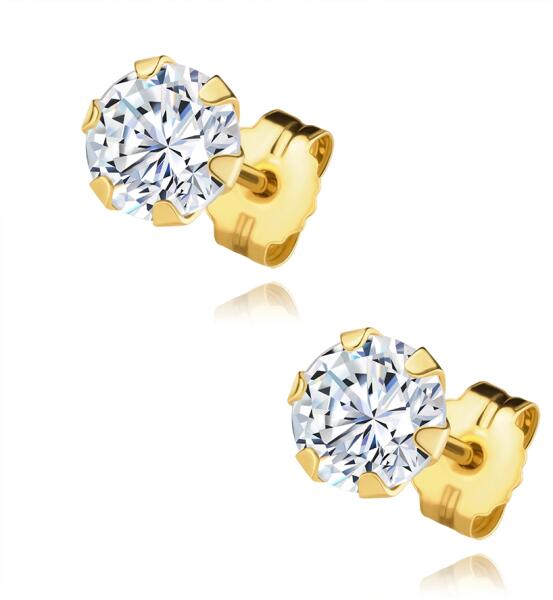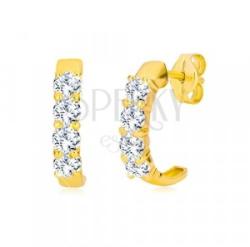 A fülbevaló 9K sárga aranyból készült, mely hátrafelé enyhén szűkül. A fülbevaló elülső részét négy csiszolt kerek cirkónia díszíti. Az átlátszó csillogó cirkóniák mélyedésbe vannak behelyezve. Az ív felülete sima , tükörfényes. Stekkeres zárszerkezet. Fülbevaló méretei: 3 x 13 mmSúly: 1,1 gFémjelzéssel ellátott. Az ár egy párra vonatkozik.