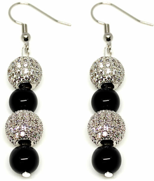 Az ékszer ásványai és tartozékai: – 8 mm-es fekete achát ásványok – 10 mm-es strasszos pavé díszek. Akasztó anyaga rozsdamentes acél. Az ékszerben található ásványok jótékony hatásai: ACHÁT Testünkre: Az achát ásványok erősítik a keringési rendszert, kiegyensúlyozzák az agyműködést. Jótékony hatásuk van az emésztésre, gyomorhurutra, hasnyálmirigyre, nyiro