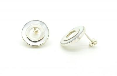 Csiszolt kagyló fülbevaló, 925 sterling ezüsttel. Átmérő: 1,7 cm Fém: 925 sterling ezüst Kő mérete: - Kő: Csiszolt kagyló Súly (gramm): 3,46 Tipus Akasztós