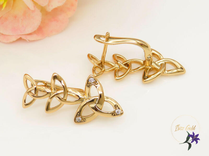 A fülbevaló méretei: 6,5 x 7 mmA fülbevaló súlya: 0,68 gFémjel - Van. Az ár egy párra vonatkozik. 9K sárga arany fülbevaló, virág formájában, három szirommal, cirkóniákkal díszítve A 9K sárga aranyból gyönyörűen és igényesen kidolgozott arany fülbevaló virág formájú. A virág három sziromból áll, közepén egy kiálló sima golyóval. A szirmokon egy központi ki