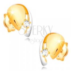 A kétszínű 585 arany fülbevaló egy könnycseppet formáz. A felső részén csillogó, kerek cirkónia díszíti, amelyet a könnycsepp és a fehér arany ív fog közre. A fülbevaló felülete sima és tükörfényes. A fülbevaló formája enyhén íves és hátulról tömör. Bedugós, stekkeres kivitel. A fülbevaló méretei: 6 x 9 mmA fülbevaló súlya: 0,7 gFémjelzéssel ellátott.