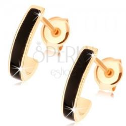 Fülbevaló 585 sárga aranyból fényes, sima vonallal, amely az alsó részben félhold alakra van hajlítva. A közepén egy feltűnő sáv húzódik fekete fénymázzal. Biztonságos viselését stekker biztosítja. A fülbevaló méretei: 2 x 9 mmA fülbevaló súlya: 0,6 gFémjelzéssel ellátott. Az ár egy párra vonatkozik.