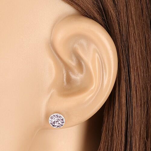 A 925 ezüst fülbevalót egy kerek fejrész díszíti, amelyet keskeny perem szegélyez. A kört az egész felületén csiszolt, halványlila cirkóniák díszítenek. A fülbevaló felülete sima és fényes. Stekkeres zárszerkezet. A fülbevaló átmérője: 6 mmA fúlbevaló súlya: 0,76 gFémjelzéssel ellátva. Az ár egy párra vonatkozik.
