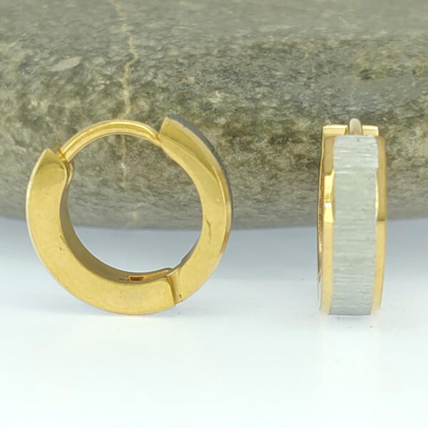 Arany-ezüstszínű nemesacél ( 316L ) karika fülbevaló, melyet metszett minta díszít. Időtálló darab, nem feketedik, nem színezi a bőrt. Antiallergén ékszer. 14K arany-ezüst színben kapható. Belső átmérője: 9 mm. Fülbevaló szélessége: 4 mm. A nemesacél ékszerek rendkívül népszerűek kedvező tulajdonságaik miatt. A nemesacél semmilyen nikkelsót nem bocsájt ki magá