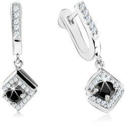 A finom, négyzet alakú fülbevalók csillogó gyémántokkal vannak kirakva, össztömege 0,130 ct, H szín és SI1 tisztaság. A gyémántok iZlato® eredetiségi tanúsítvánnyal rendelkeznek.