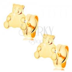 Fülbevaló 14K sárga aranyból aranyos medve forma, melynek pocakja sima, a feje és tappancsai részletesen gravírozottak. Bedugós, stekkeres kivitel. A fülbevaló méretei: 6 x 6 mmSúly: 0,4 gFémjelzéssel ellátott. Az ár egy párra vonatkozik.