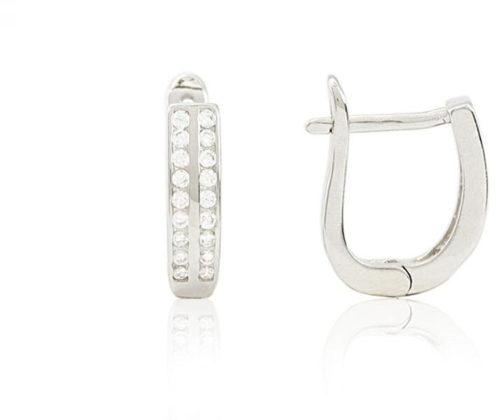 Ragyogóan szépen szikráznak a rájuk eső fényben ezek az apró fehér cirkónia kövecskék! Akár ajándékba, akár saját kiegészítőnek, ez a kis ezüst fülbevaló tökéletes választás lehet! Ezüst fülbevaló franciakapcsos elegáns dupla sorban köves ródiumbevonatosAnyaga: 925 ezüstBevonat: ródiumbevonatosSzélesség: 4 mmBelső hasznos terület: 9 x 8 mmKő: fehér cirkónia