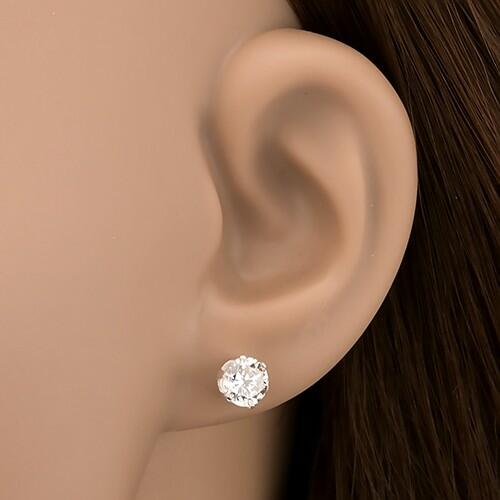 Az egyszerű bedugós fülbevaló sterling ezüstből készült. A karmos fogatba gömbölyű, csiszolt, tiszta cirkónia van helyezve. A kő átmérője: 6 mmA fülbevaló súlya: 1,2 gFémjelzéssel ellátott. Az ár egy párra vonatkozik.