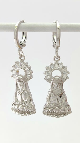 Ezüstszínű karika fülbevaló, melyet csillogó fehér cirkónia kristályos függő díszít. A kristályok karmos foglalatban helyezkednek el. Tartós ékszer, fürdéskor nem kell levenni, nem feketedik ("gold filled"). Antiallergén ékszer. Fülbevaló teljes hossza: 37 mm. Kapcsos rész belső átmérője: 8 mm. Függő szélessége: 12 mm. Az antiallergén ékszerek olyan fémötvözetb