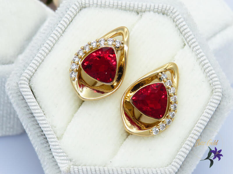 Gold Filled gyönyörű Swarovski köves fülbevaló Háromszög alakú központi kővel nagyon mutatós darab Szin: 18K Méret: 20x10mm Zár: francia kapocs Szine kissé eltérhet a fotótól , élőben sokkal szebb nagyban függ a ráeső fény szögétől A forgalmazott divatékszerek alapanyaga nikkel és ólommentes ezért többnyire nem okoznak allergiás tüneteket, nyugodtan hordhatják f