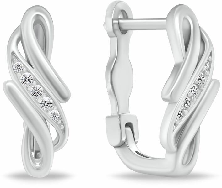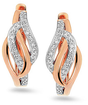 Gyönyörű, egyszerű stílusú arany fülbevaló, amely szinte bármivel passzol. A hullámos vonalak és a rózsaarany természetes eleganciája ragyogó megjelenést kölcsönöz a fülbevalóknak. A fülbevalót összesen ötven csillogó, briliáns csiszolású gyémánt díszíti, amelyek összsúlya 0,110 ct.